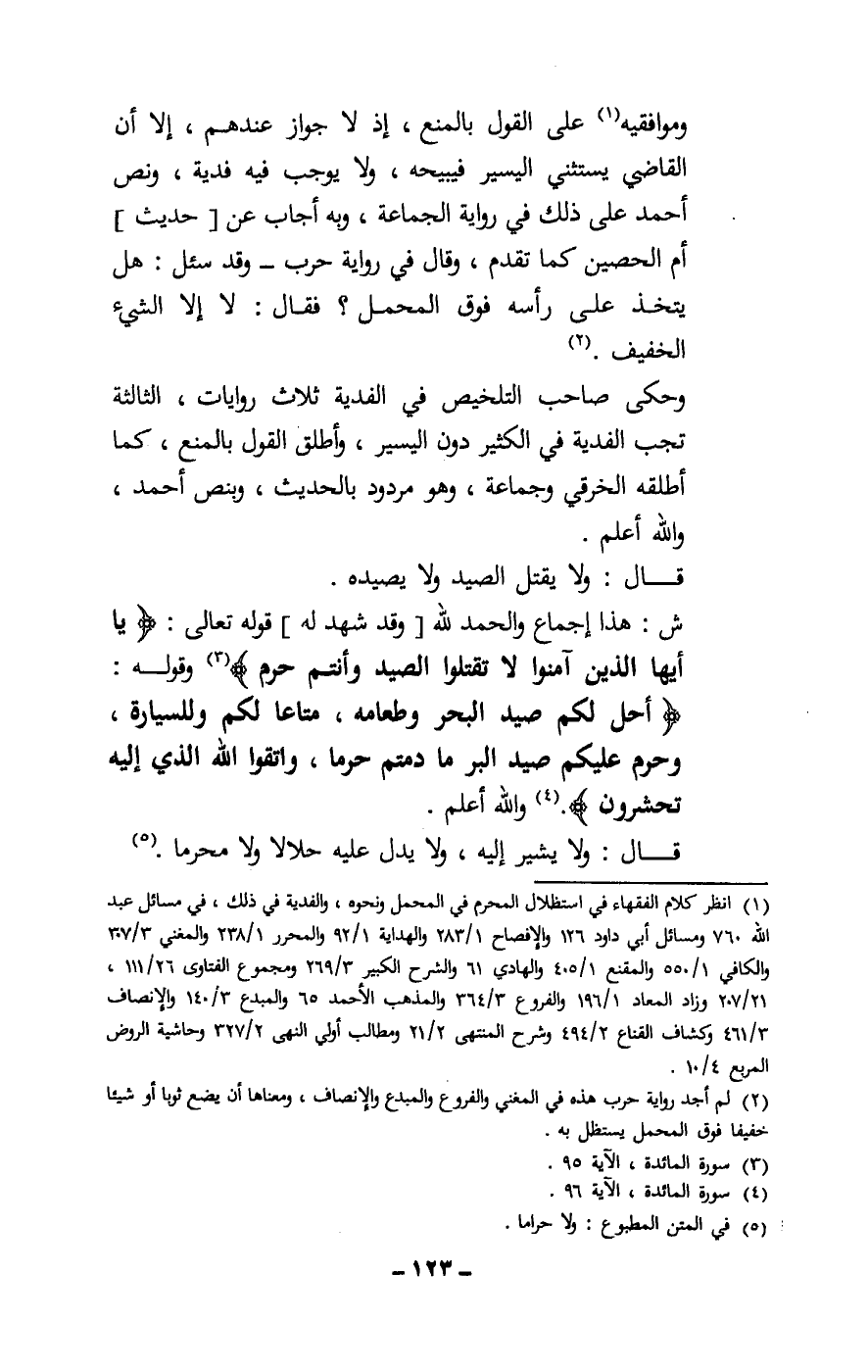 ش: هذا إجماع والحمد لله [وقد شهد له] قَوْله تَعَالَى: {يَاأَيُّهَا الَّذِينَ آمَنُوا لَا تَقْتُلُوا الصَّيْدَ وَأَنْتُمْ حُرُمٌ} [المائدة: 95] وقوله: {أُحِلَّ لَكُمْ صَيْدُ الْبَحْرِ وَطَعَامُهُ مَتَاعًا لَكُمْ وَلِلسَّيَّارَةِ وَحُرِّمَ عَلَيْكُمْ صَيْدُ الْبَرِّ مَا دُمْتُمْ حُرُمًا وَاتَّقُوا اللَّهَ الَّذِي إِلَيْهِ تُحْشَرُونَ} [المائدة: 96] . والله أعلم.
