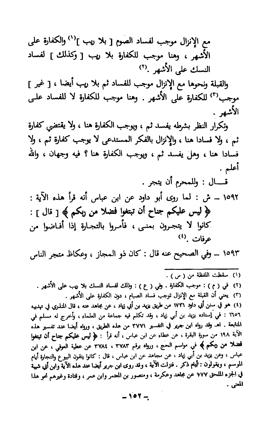 1592 - ش: لما روى أبو داود عن ابن عباس أنه قرأ هذه الآية: {لَيْسَ عَلَيْكُمْ جُنَاحٌ أَنْ تَبْتَغُوا فَضْلًا مِنْ رَبِّكُمْ} [البقرة: 198] [قال] : كانوا لا يتجرون بمنى، فأمروا بالتجارة إذا أفاضوا من عرفات.