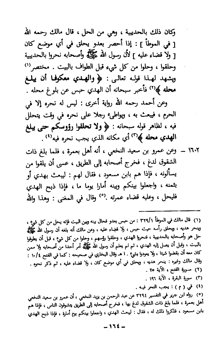 1602 - وعن عمرو بن سعيد النخعي، أنه أهل بعمرة، فلما بلغ ذات الشقوق لدغ، فخرج أصحابه إلى الطريق، عسى أن يلقوا من يسألونه، فإذا هم بابن مسعود، فقال لهم: ليبعث بهدي أو بثمنه، واجعلوا بينكم وبينه أمارا يوما ما، فإذا ذبح الهدي فليحل، وعليه قضاء عمرته. وقال في المغنى: هذا والله