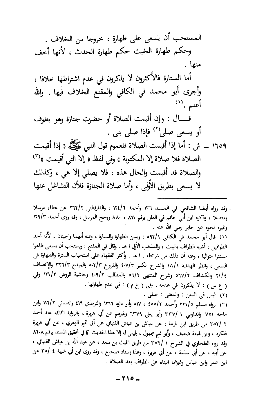 1659 - ش: أما إذا أقيمت الصلاة فلعموم قول النبي - صَلَّى اللَّهُ عَلَيْهِ وَسَلَّمَ -: «إذا أقيمت الصلاة فلا صلاة إلا المكتوبة» وفي لفظ «إلا التي أقيمت» والصلاة قد أقيمت والحال هذه، فلا يصلي إلا هي، وكذلك لا يسعى بطريق الأولى، وأما صلاة الجنازة فلأن التشاغل عنها