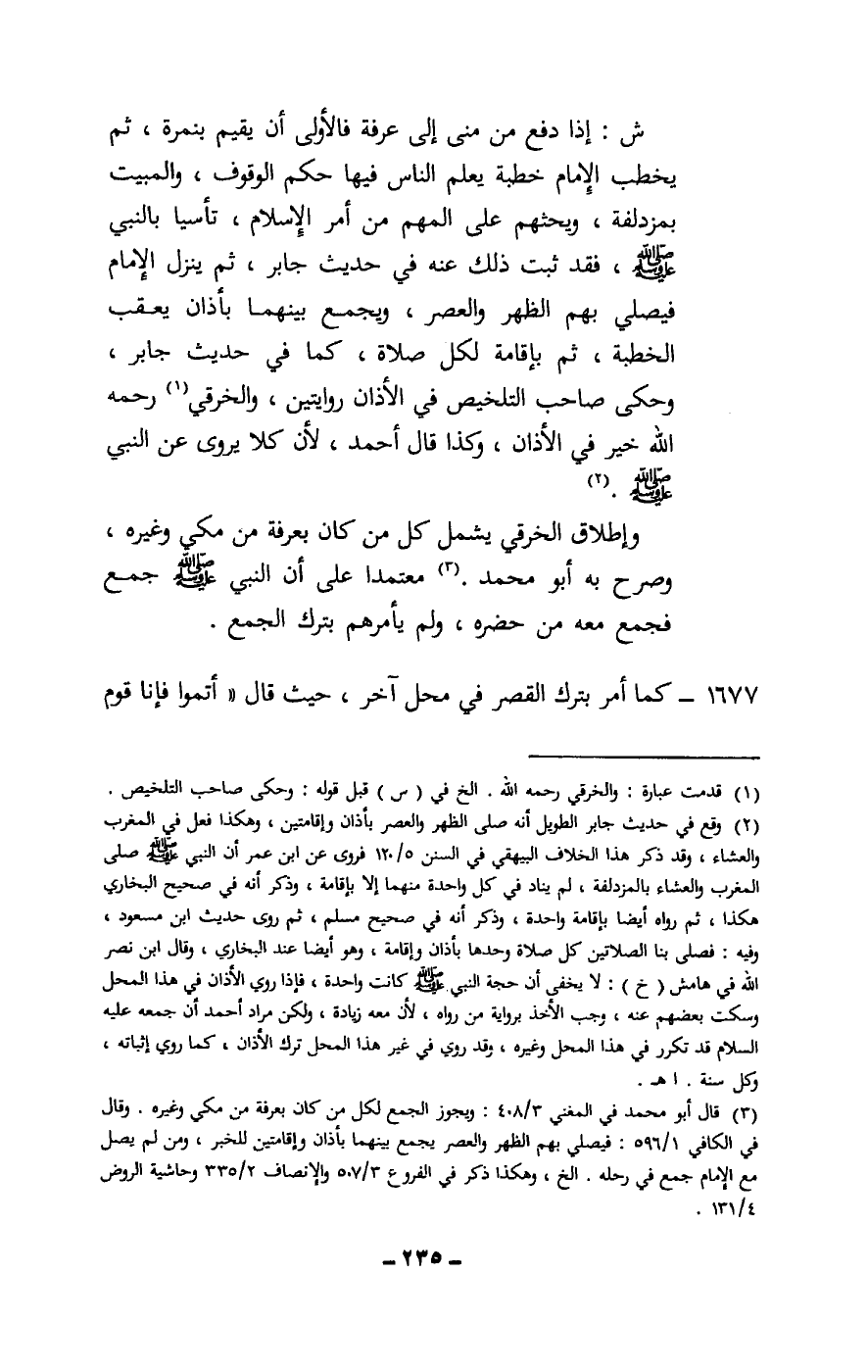 1677 - كما أمر بترك القصر في محل آخر، حيث قال «أتموا فإنا قوم