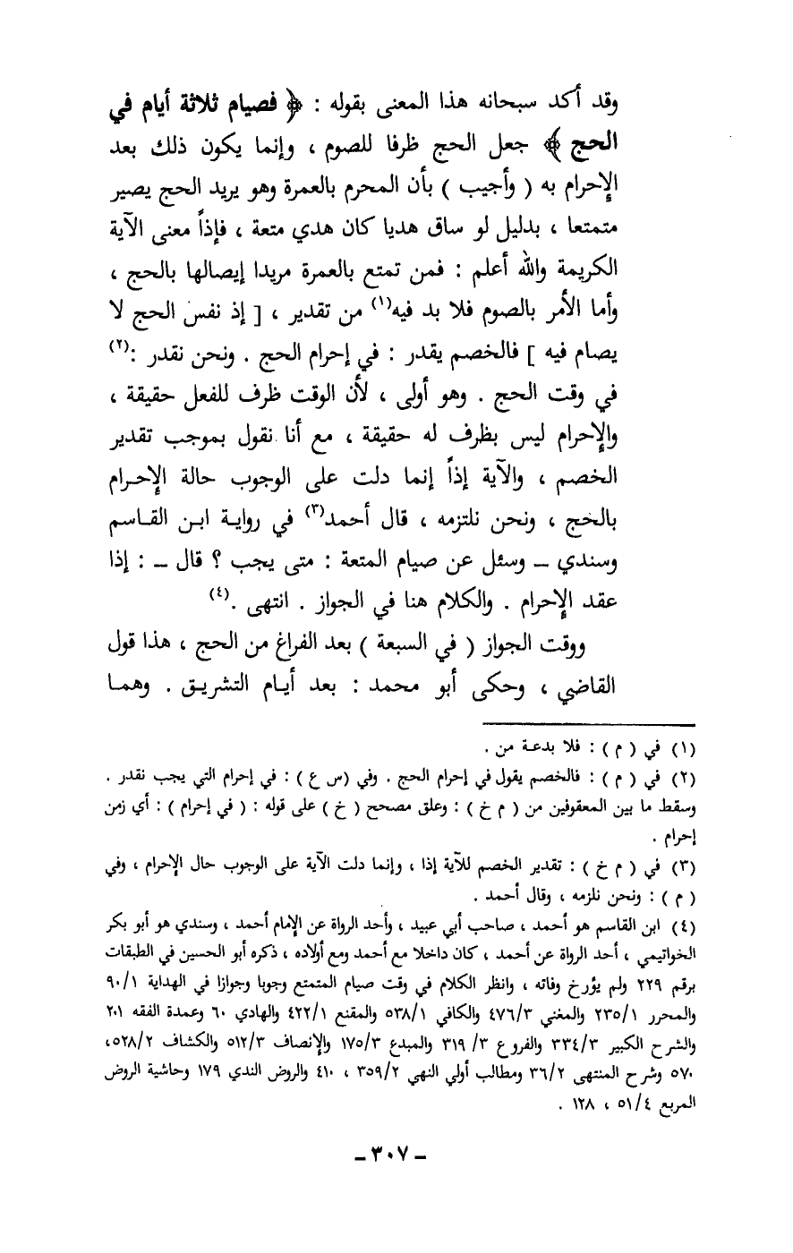 وقد أكد سبحانه هذا المعنى بقوله: {فَصِيَامُ ثَلَاثَةِ أَيَّامٍ فِي الْحَجِّ} [البقرة: 196] ، جعل الحج ظرفا للصوم، وإنما يكون ذلك بعد الإحرام به (وأجيب) بأن المحرم بالعمرة وهو يريد الحج يصير متمتعا، بدليل لو ساق هديا كان هدي متعة، فإذا معنى الآية الكريمة، والله أعلم: فمن تمتع بالعمرة مريدا إيصالها بالحج، وأما الأمر بالصوم فلا بد فيه من تقدير، إذ نفس الحج لا يصام فيه، فالخصم يقدر: في إحرام الحج. ونحن نقدر: في وقت الحج. وهو أولى، لأن الوقت ظرف للفعل حقيقة، والإحرام ليس بظرف له حقيقة، مع أنا نقول بموجب تقدير الخصم، والآية إذا إنما دلت على الوجوب حالة الإحرام بالحج، ونحن نلتزمه.