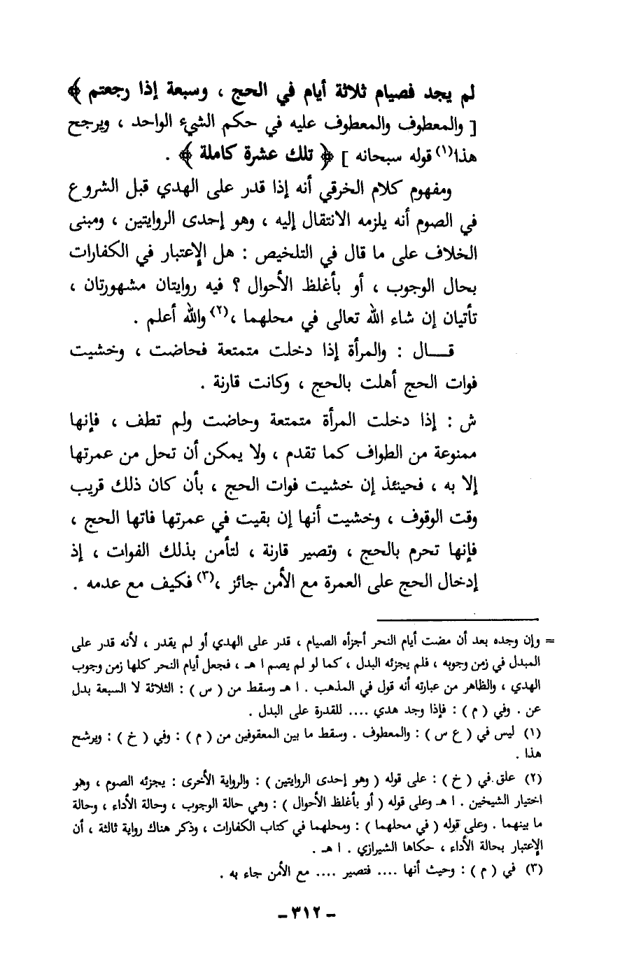{فَمَنْ لَمْ يَجِدْ فَصِيَامُ ثَلَاثَةِ أَيَّامٍ فِي الْحَجِّ وَسَبْعَةٍ إِذَا رَجَعْتُمْ} [البقرة: 196] ، [والمعطوف والمعطوف عليه في حكم الشيء الواحد، ويرجح هذا قوله سبحانه] : {تِلْكَ عَشَرَةٌ كَامِلَةٌ} [البقرة: 196] . ومفهوم كلام الخرقي أنه إذا قدر على الهدي قبل الشروع في الصوم أنه يلزمه الانتقال إليه، وهو إحدى الروايتين، ومبنى الخلاف على ما قال في التلخيص: هل الاعتبار في الكفارات بحال الوجوب، أو بأغلظ الأحوال؟ فيه روايتان مشهورتان، تأتيان إن شاء الله تعالى في محلهما، والله أعلم.