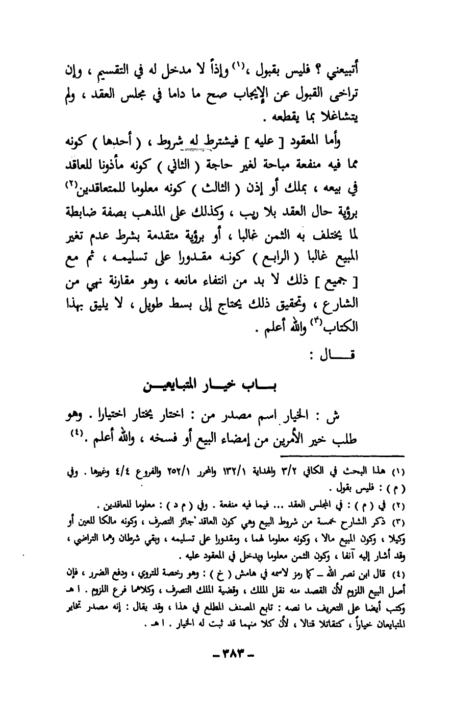 ش: الخيار اسم مصدر من: اختار يختار اختيارا. وهو طلب خير الأمرين من إمضاء البيع أو فسخه، والله أعلم.