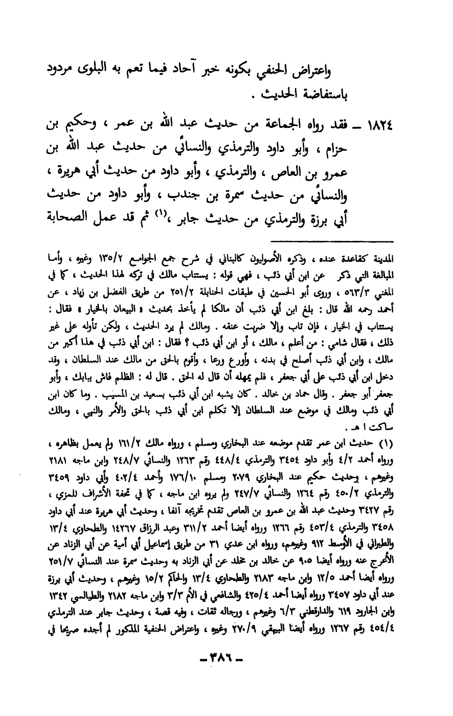 1824 - فقد رواه الجماعة من حديث عبد الله بن عمر، وحكيم بن حزام، وأبو داود، والترمذي، والنسائي، من حديث عبد الله بن عمرو بن العاص؛ والترمذي وأبو داود من حديث أبي هريرة، والنسائي من حديث سمرة بن جندب، وأبو داود من حديث أبي برزة، والترمذي من حديث جابر. ثم قد عمل الصحابة