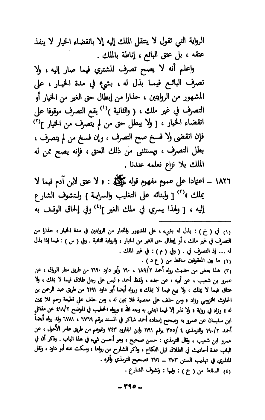 1826 - اعتمادا على عموم مفهوم قوله - صَلَّى اللَّهُ عَلَيْهِ وَسَلَّمَ -: «لا عتق لابن آدم فيما لا يملك» [ولبنائه على التغليب والسراية] ولتشوف الشارع إليه، [ولهذا يسري في ملك الغير] وفي إلحاق الوقف به