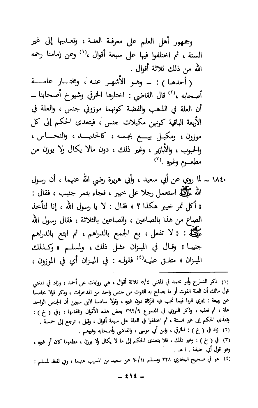 وجمهور أهل العلم على معرفة العلة، وتعديها إلى غير الستة، ثم اختلفوا فيها على سبعة أقوال، وعن إمامنا - رَحِمَهُ اللَّهُ - من ذلك ثلاثة أقوال.