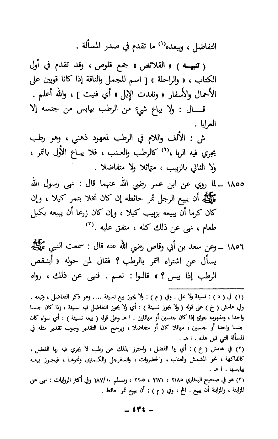 1856 - وعن سعد بن أبي وقاص - رَضِيَ اللَّهُ عَنْهُ - قال: «سمعت النبي - صَلَّى اللَّهُ عَلَيْهِ وَسَلَّمَ - يسأل عن اشتراء التمر بالرطب؟ فقال لمن حوله «أينقص الرطب إذا يبس؟» قالوا: نعم. فنهى عن ذلك» ، رواه