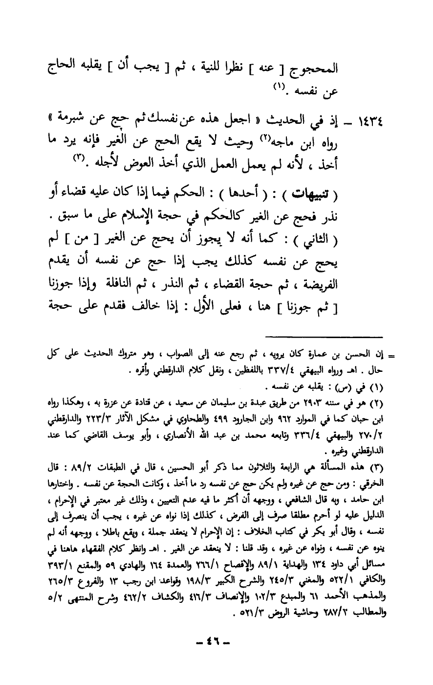 المحجوج [عنه] نظرا للنية، ثم [يجب أن] يقلبه الحاج عن نفسه.