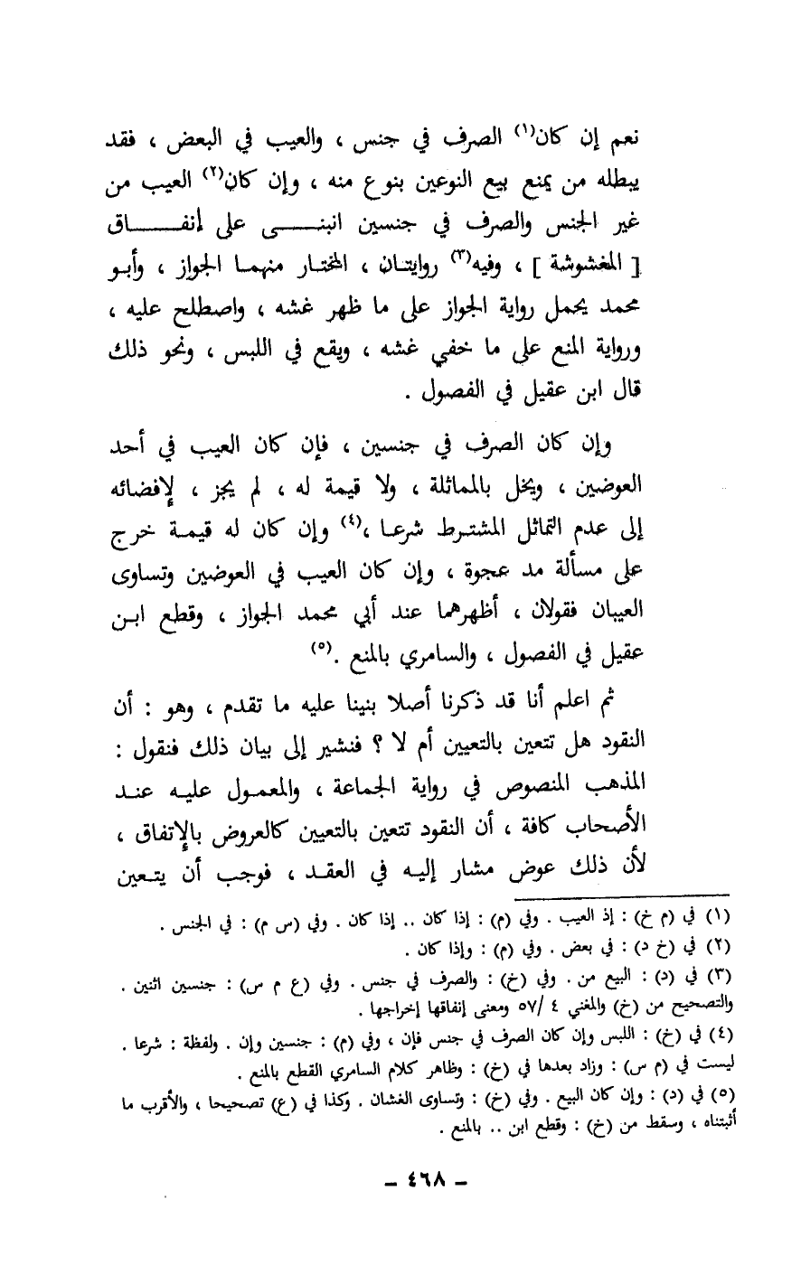 نعم إن كان الصرف في جنس، والعيب في البعض، فقد يبطله من يمنع بيع النوعين بنوع منه، وإن كان العيب من غير الجنس والصرف في جنسين انبنى على إنفاق [المغشوشة] ، وفيه روايتان، المختار منهما الجواز، وأبو محمد يحمل رواية الجواز على ما ظهر غشه، واصطلح عليه ورواية المنع على ما خفي غشه، ويقع في اللبس، ونحو ذلك قال ابن عقيل في الفصول.