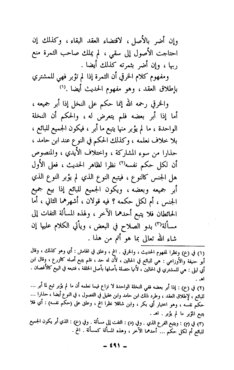 والخرقي - رَحِمَهُ اللَّهُ - إنما حكم على النخل إذا أبر جميعه، أما إذا أبر بعضه فلم يتعرض له، والحكم أن النخلة الواحدة، ما لم يؤبر منها يتبع ما أبر، فيكون الجميع للبائع، بلا خلاف نعلمه، وكذلك الحكم في النوع عند ابن حامد، حذارا من سوء المشاركة، واختلاف الأيدي، والمنصوص أن لكل حكم نفسه نظرا لظاهر الحديث، فعلى الأول هل الجنس كالنوع، فيتبع النوع الذي لم يؤبر النوع الذي أبر جميعه وبعضه، ويكون الجميع للبائع إذا بيع جميع الجنس، أم لكل حكمه؟ فيه قولان، أشهرهما الثاني، أما الحائطان فلا يتبع أحدهما الآخر، ولهذه المسألة التفات إلى مسألة بدو الصلاح في البعض، ويأتي الكلام عليها إن شاء الله تعالى بما هو أتم من هذا.