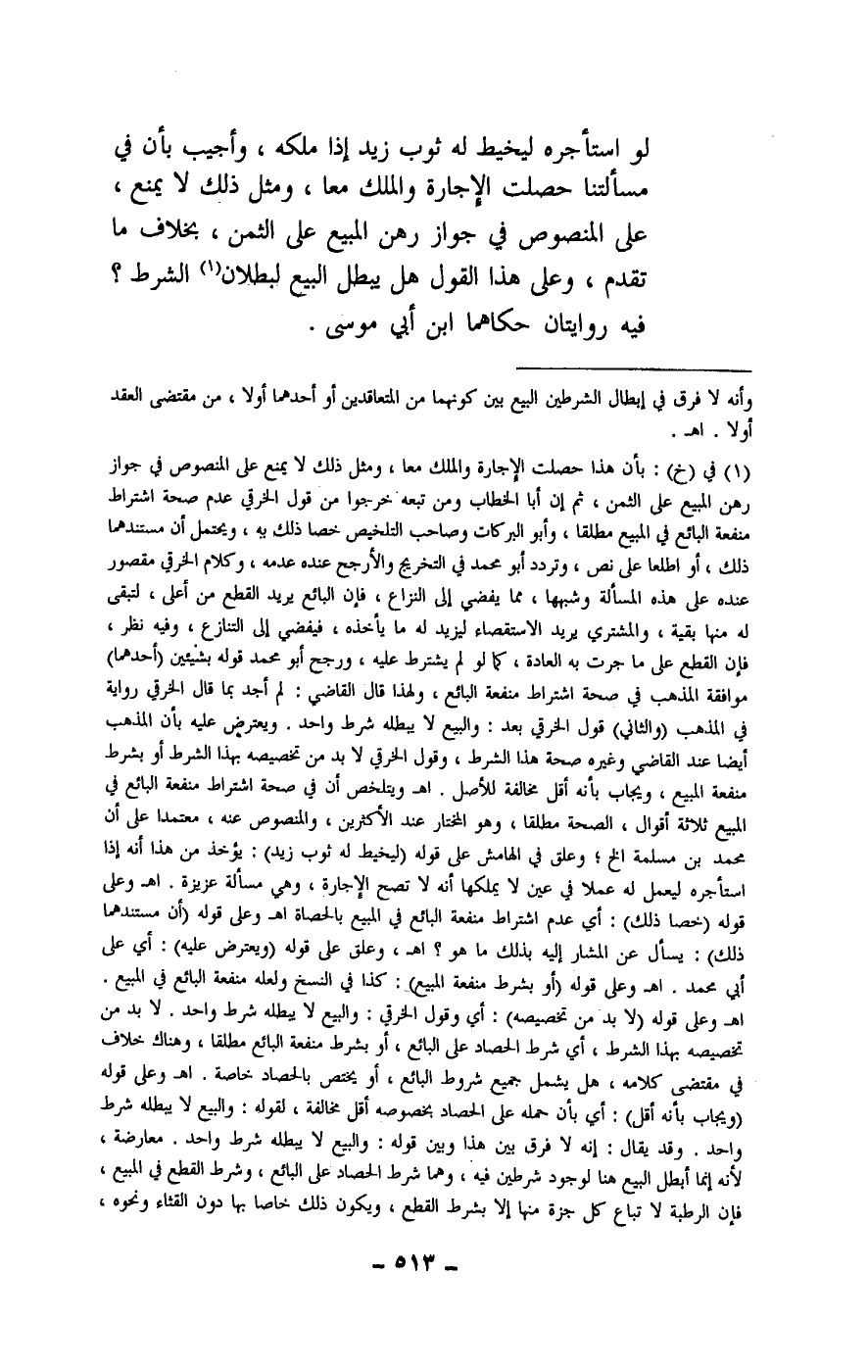لو استأجره ليخيط له ثوب زيد إذا ملكه، وأجيب بأن في مسألتنا حصلت الإجارة والملك معا، ومثل ذلك لا يمنع، على المنصوص في جواز رهن المبيع على الثمن، بخلاف ما تقدم، وعلى هذا القول هل يبطل البيع لبطلان الشرط؟ فيه روايتان حكاهما ابن أبي موسى.