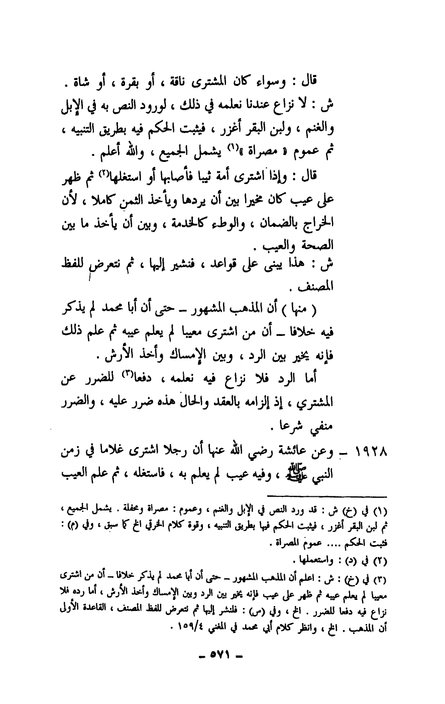 1928 - وعن عائشة - رَضِيَ اللَّهُ عَنْهَا - «أن رجلا اشترى غلاما في زمن النبي - صَلَّى اللَّهُ عَلَيْهِ وَسَلَّمَ -، وفيه عيب لم يعلم به، فاستغله، ثم علم العيب