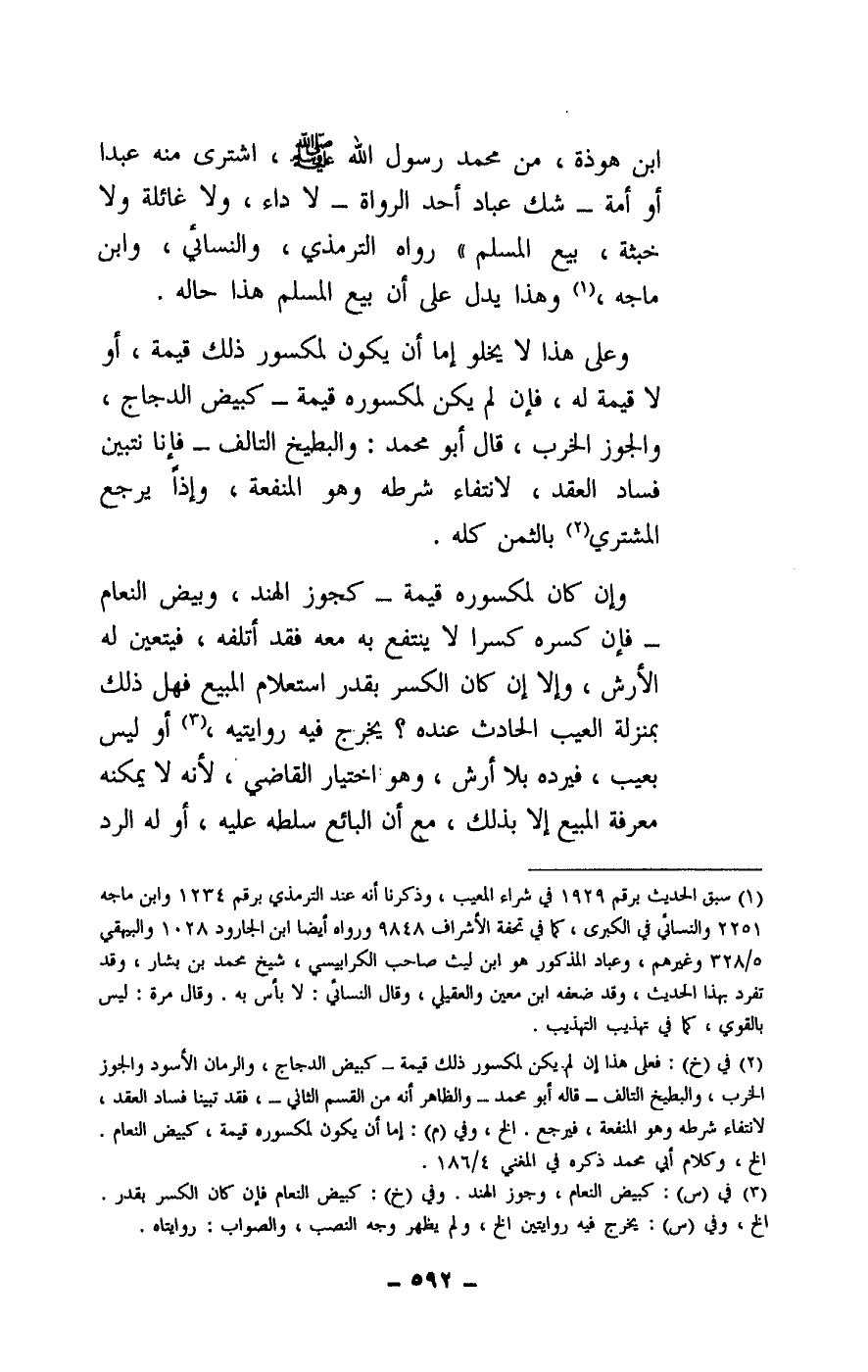 بن هوذة، من محمد رسول الله - صَلَّى اللَّهُ عَلَيْهِ وَسَلَّمَ -، اشترى منه عبدا أو أمة - شك عباد أحد الرواة - لا داء، ولا غائلة ولا خبثة، بيع المسلم» رواه الترمذي، والنسائي، وابن ماجه، وهذا يدل على أن بيع المسلم هذا حاله.