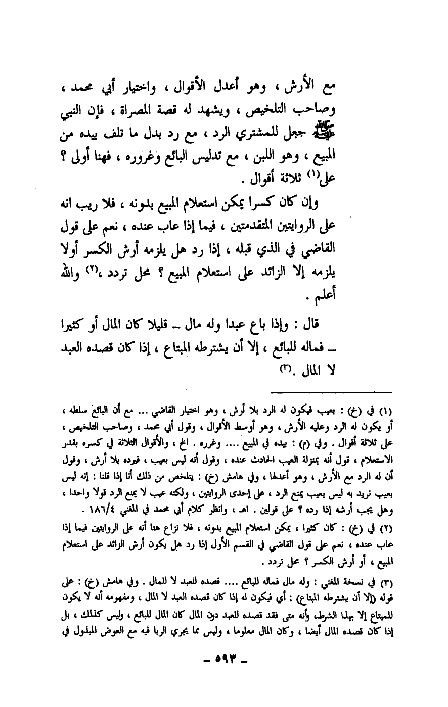 مع الأرش، وهو أعدل الأقوال، واختيار أبي محمد، وصاحب التلخيص، ويشهد له قصة المصراة، فإن النبي - صَلَّى اللَّهُ عَلَيْهِ وَسَلَّمَ - جعل للمشتري الرد، مع رد بدل ما تلف بيده من المبيع، وهو اللبن، مع تدليس البائع وغروره، فهنا أولى؟ على ثلاثة أقوال.