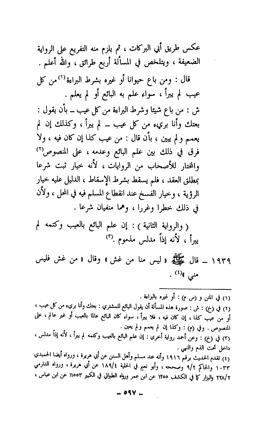 1939 - قال - صَلَّى اللَّهُ عَلَيْهِ وَسَلَّمَ -: «ليس منا من غش» وقال: «من غش فليس مني» .