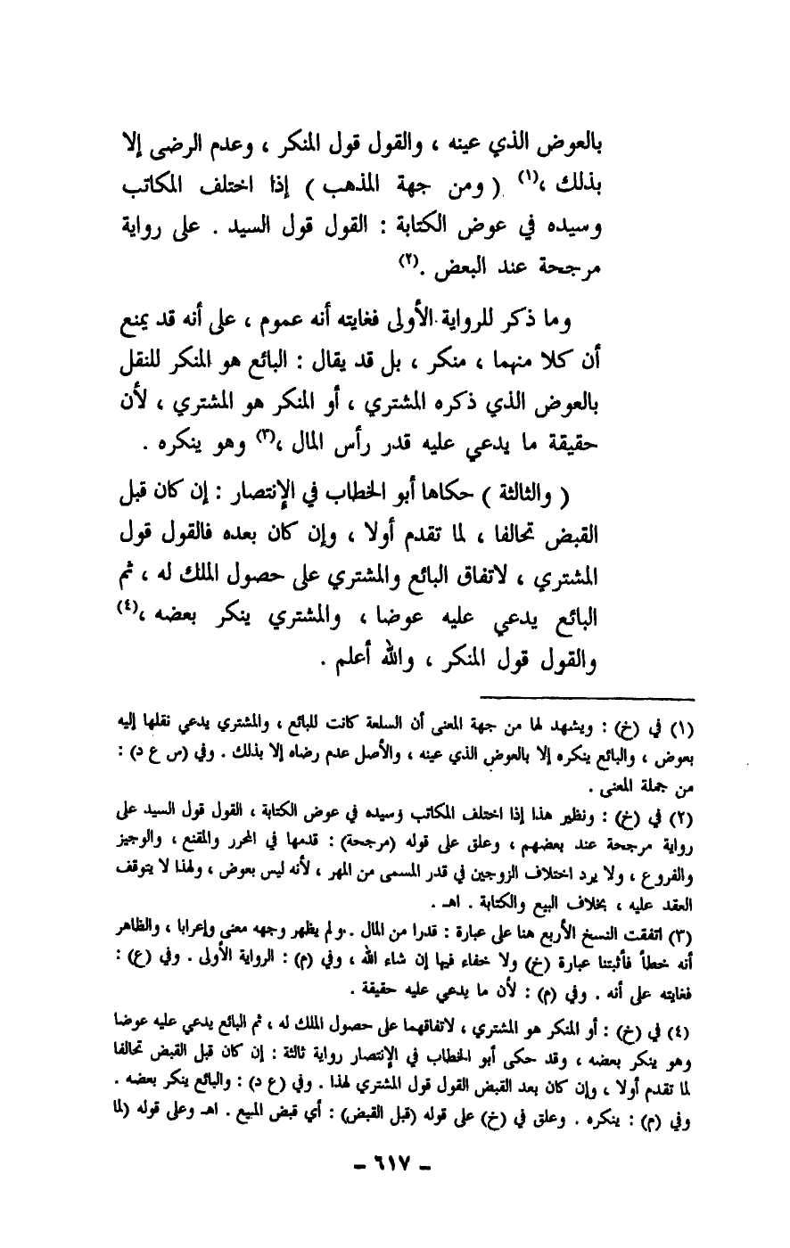بالعوض الذي عينه، والقول قول المنكر، وعدم الرضى إلا بذلك، (ومن جهة المذهب) إذا اختلف المكاتب وسيده في عوض الكتابة: القول قول السيد. على رواية مرجحة عند البعض.