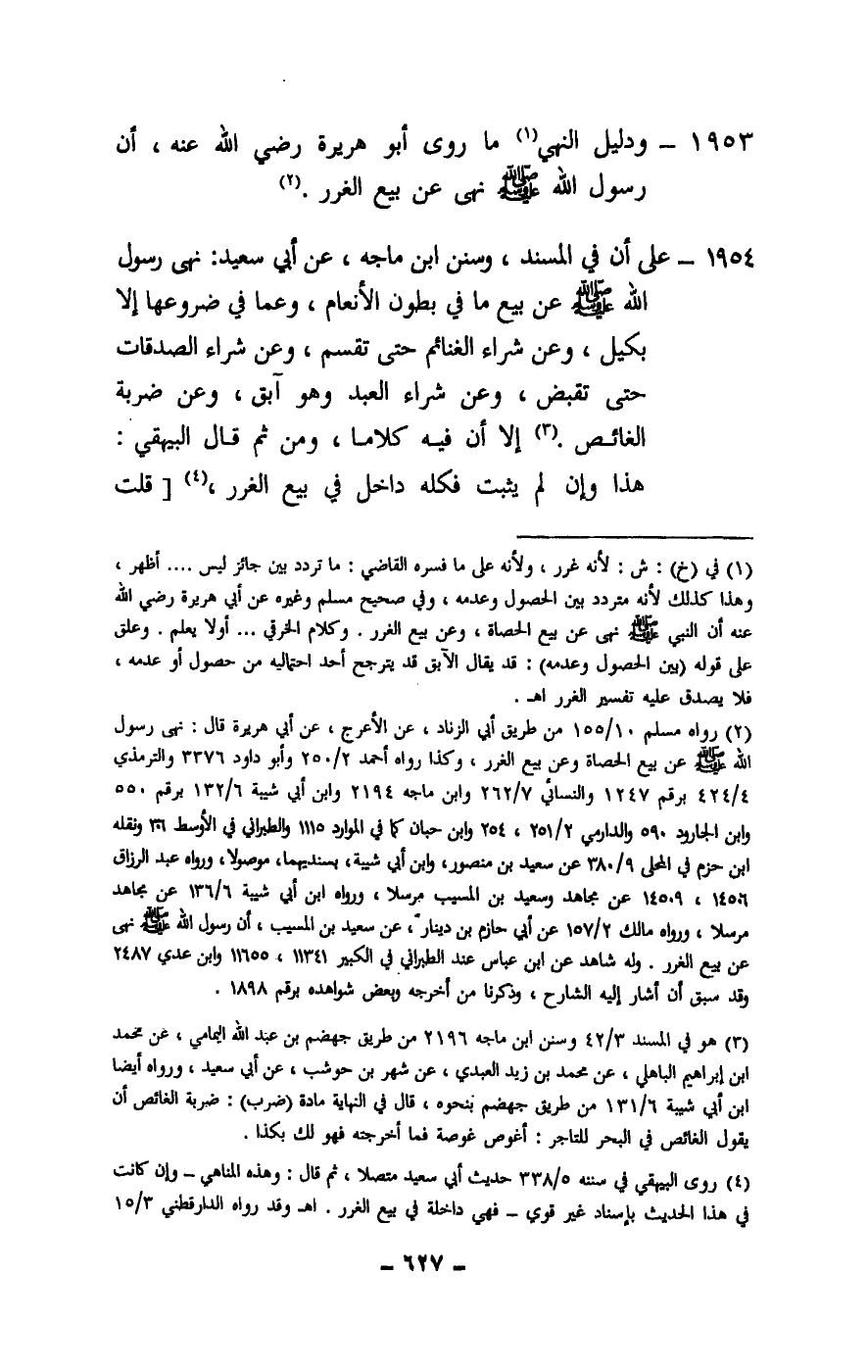 1953 - ودليل النهي ما روى أبو هريرة - رَضِيَ اللَّهُ عَنْهُ -، «أن رسول الله - صَلَّى اللَّهُ عَلَيْهِ وَسَلَّمَ - نهى عن بيع الغرر» .