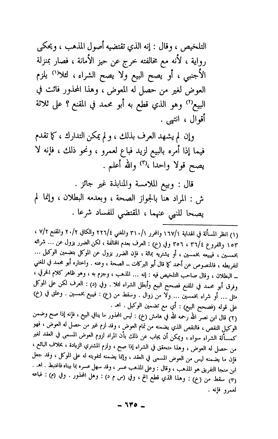 التلخيص، وقال: إنه الذي تقتضيه أصول المذهب، ويحكى رواية، لأنه مع مخالفته خرج عن حيز الأمانة، فصار بمنزلة الأجنبي، أو يصح البيع ولا يصح الشراء، لئلا يلزم العوض لغير من حصل له المعوض، وهذا المحذور فائت في البيع، وهو الذي قطع به أبو محمد في المقنع؟ على ثلاثة أقوال، انتهى.