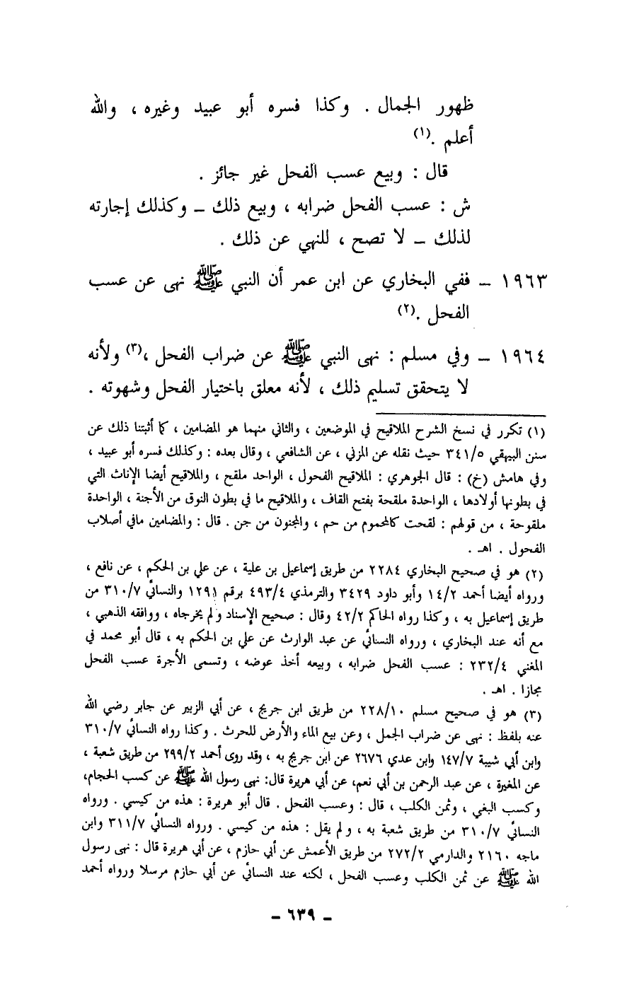 1963 - ففي البخاري عن ابن عمر «أن النبي - صَلَّى اللَّهُ عَلَيْهِ وَسَلَّمَ - نهى عن عسب الفحل» .