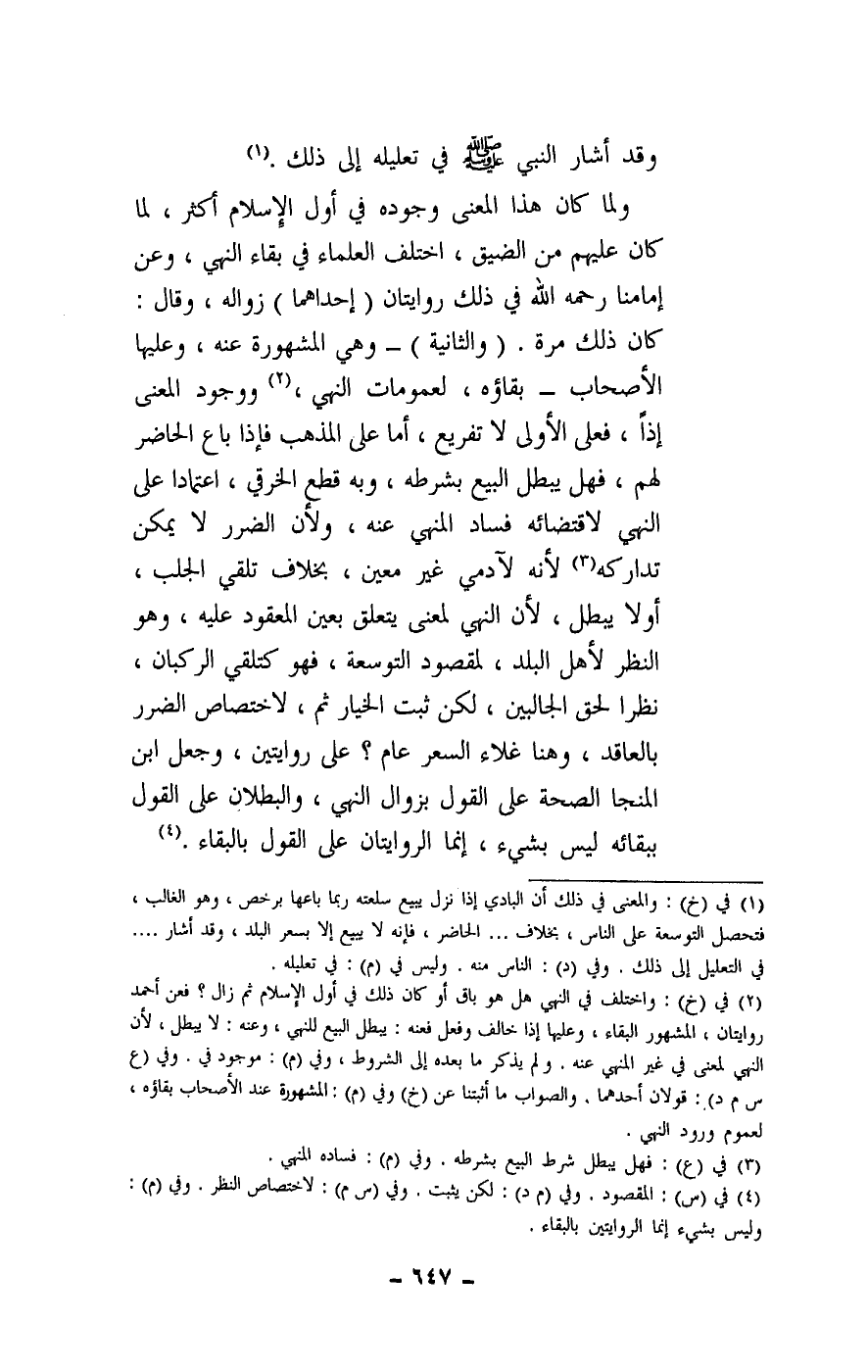 ولما كان هذا المعنى وجوده في أول الإسلام أكثر، لما كان عليهم من الضيق، اختلف العلماء في بقاء النهي، وعن إمامنا - رَحِمَهُ اللَّهُ - في ذلك روايتان (إحداهما) زواله، وقال: كان ذلك مرة.