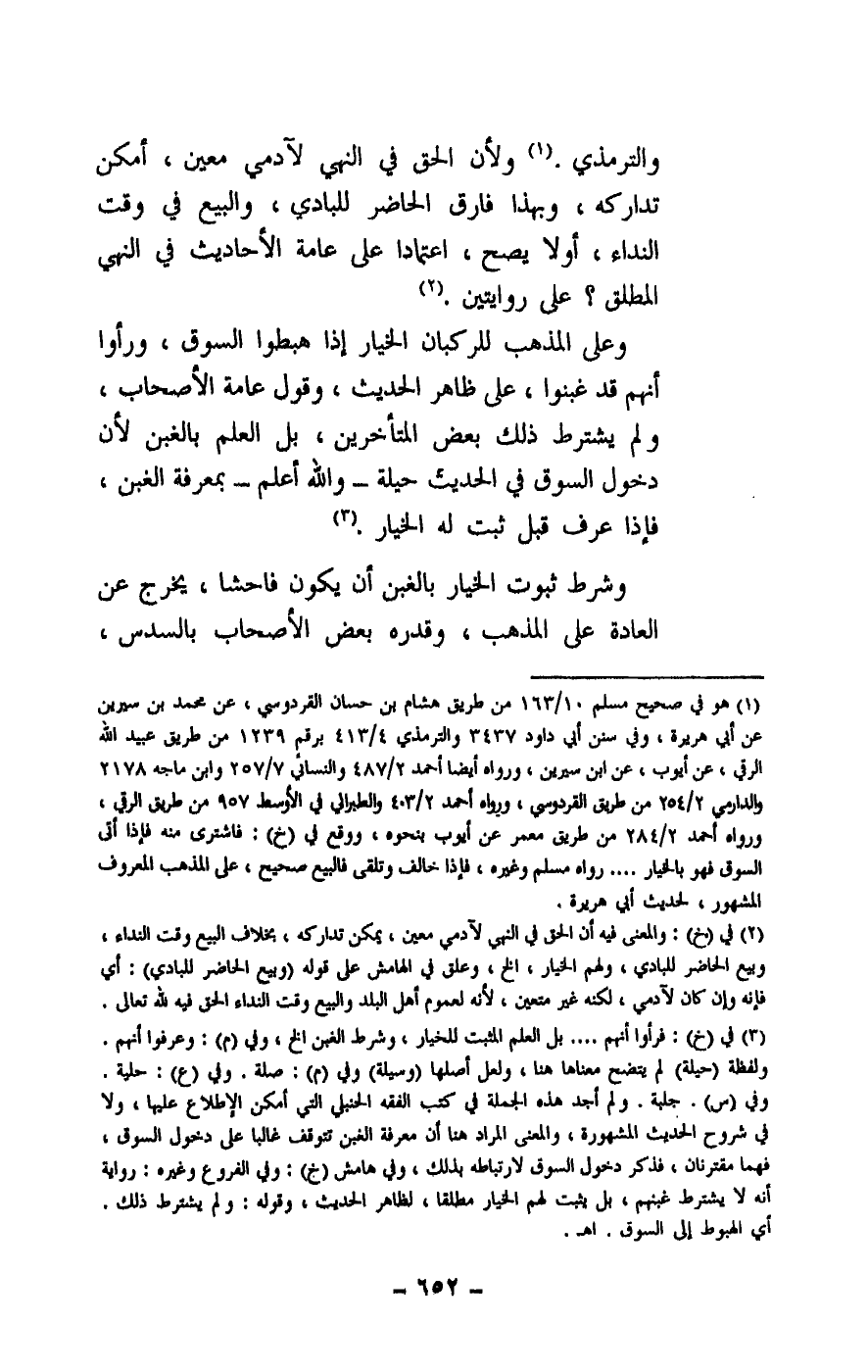 والترمذي. ولأن الحق في النهي لآدمي معين، أمكن تداركه، وبهذا فارق الحاضر للبادي، والبيع في وقت النداء، أو لا يصح، اعتمادا على عامة الأحاديث في النهي المطلق؟ على روايتين.