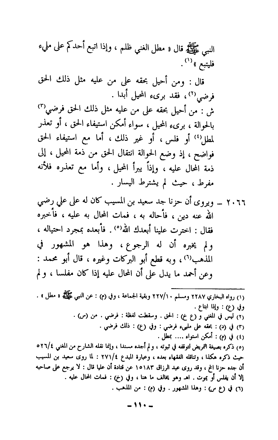 النبي - صَلَّى اللَّهُ عَلَيْهِ وَسَلَّمَ - قال: «مطل الغني ظلم، وإذا اتبع أحدكم على مليء فليتبع» .