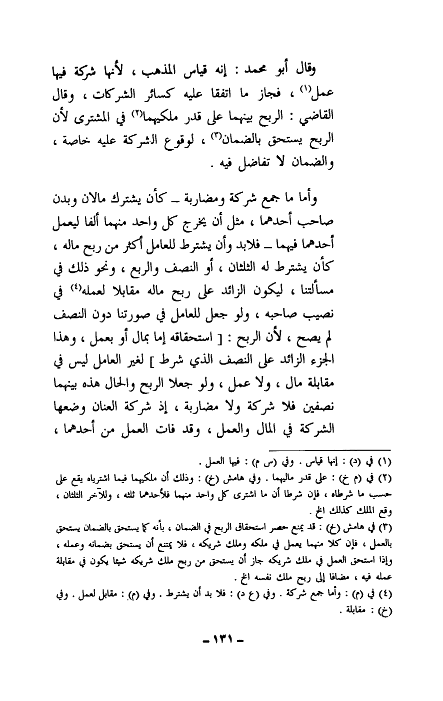 وقال أبو محمد: إنه قياس المذهب، لأنها شركة فيها عمل، فجاز ما اتفقا عليه كسائر الشركات.