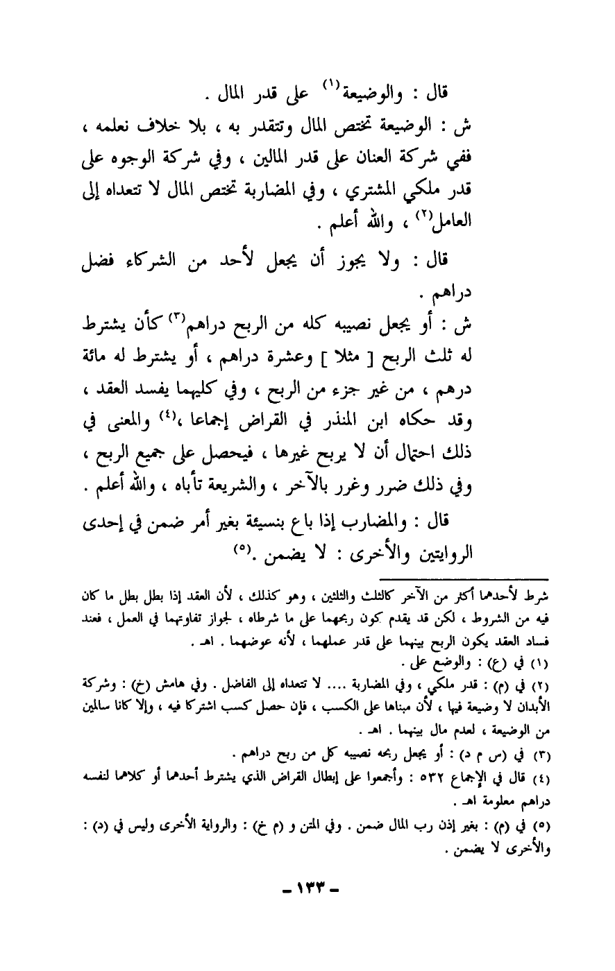 قال: ولا يجوز أن يجعل لأحد من الشركاء فضل دراهم.