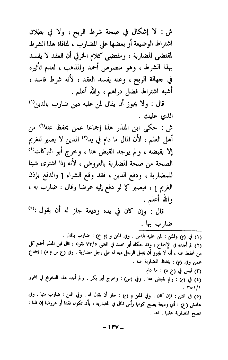 قال: ولا يجوز أن يقال لمن عليه دين ضارب بالدين الذي عليك.