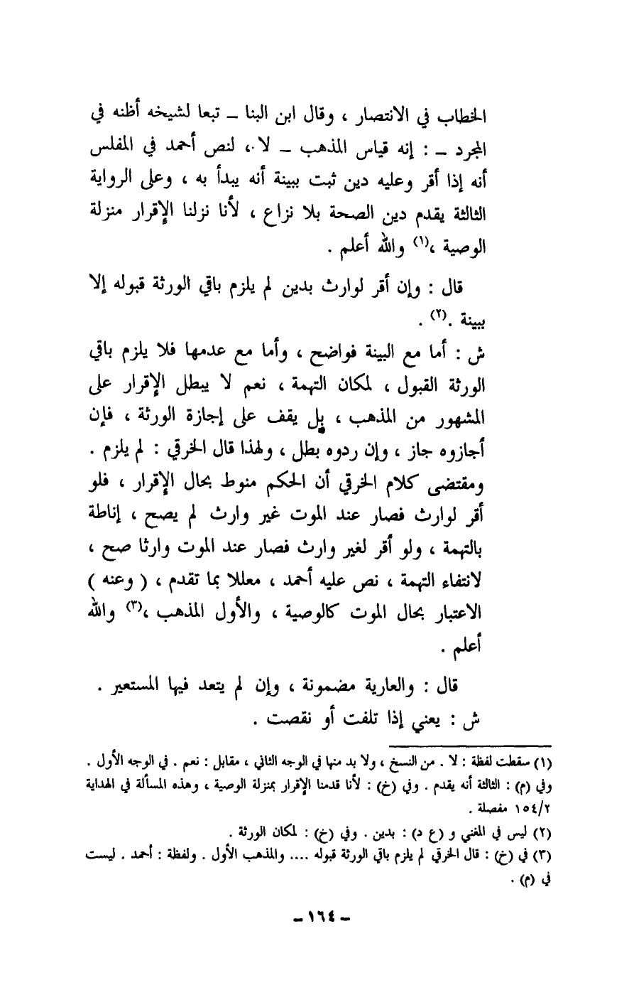 الخطاب في الانتصار، وقال ابن البنا - تبعا لشيخه أظنه في المجرد إنه قياس المذهب -: لا، لنص أحمد في المفلس أنه إذا أقر وعليه دين ثبت ببينة أنه يبدأ به. وعلى الرواية الثالثة يقدم دين الصحة بلا نزاع، لأنا نزلنا الإقرار منزلة الوصية، والله أعلم.
