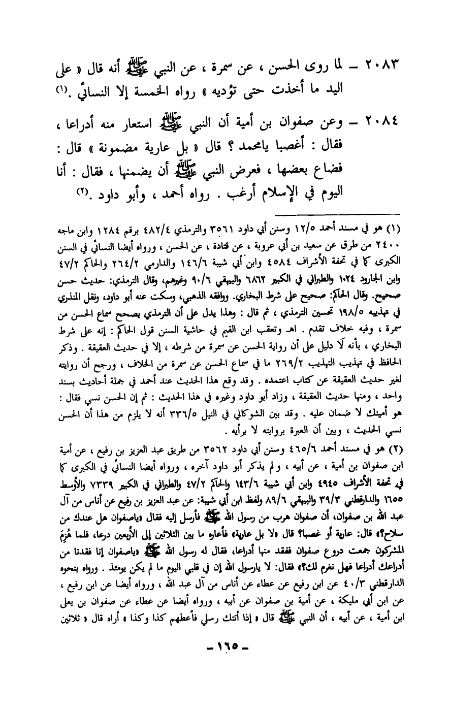 2083 - لما روى الحسن، عن سمرة، عن النبي - صَلَّى اللَّهُ عَلَيْهِ وَسَلَّمَ - أنه قال: «على اليد ما أخذت حتى تؤديه» . رواه الخمسة إلا النسائي.