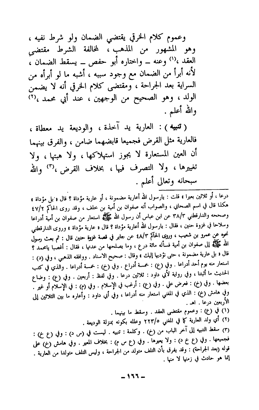 (تنبيه) : العارية يد آخذة، والوديعة يد معطاة، فالعارية مثل القرض، فجميعا قابضهما ضامن، والفرق بينهما أن العين المستعارة لا يجوز استهلاكها، ولا هبتها، ولا تغييرها، ولا التصرف فيها، بخلاف القرض، والله سبحانه وتعالى أعلم.