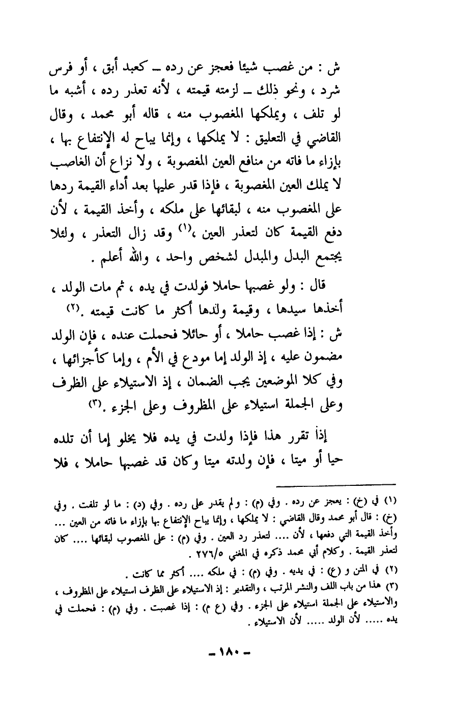 ش: إذا غصب حاملا، أو حائلا فحملت عنده، فإن الولد مضمون عليه، إذ الولد إما مودع في الأم، وإما كأجزائها، وفي كلا الموضعين يجب الضمان، إذ الاستيلاء على الظرف وعلى الجملة استيلاء على المظروف وعلى الجزء.
