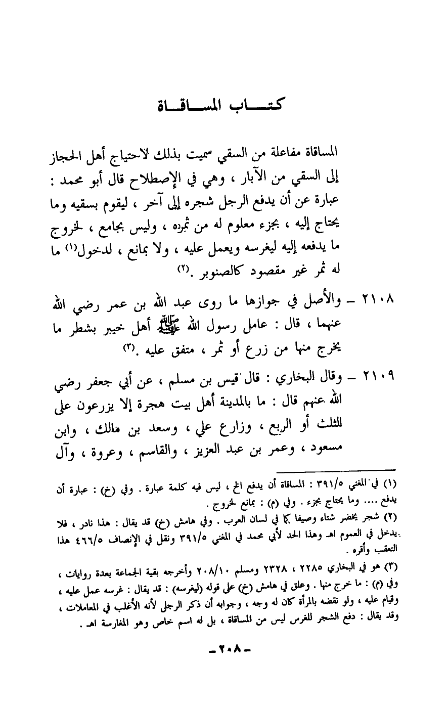 2108 - والأصل في جوازها ما روى عبد الله بن عمر - رَضِيَ اللَّهُ عَنْهُمَا -، قال: «عامل رسول الله - صَلَّى اللَّهُ عَلَيْهِ وَسَلَّمَ - أهل خيبر بشطر ما يخرج منها من زرع أو ثمر» ، متفق عليه.