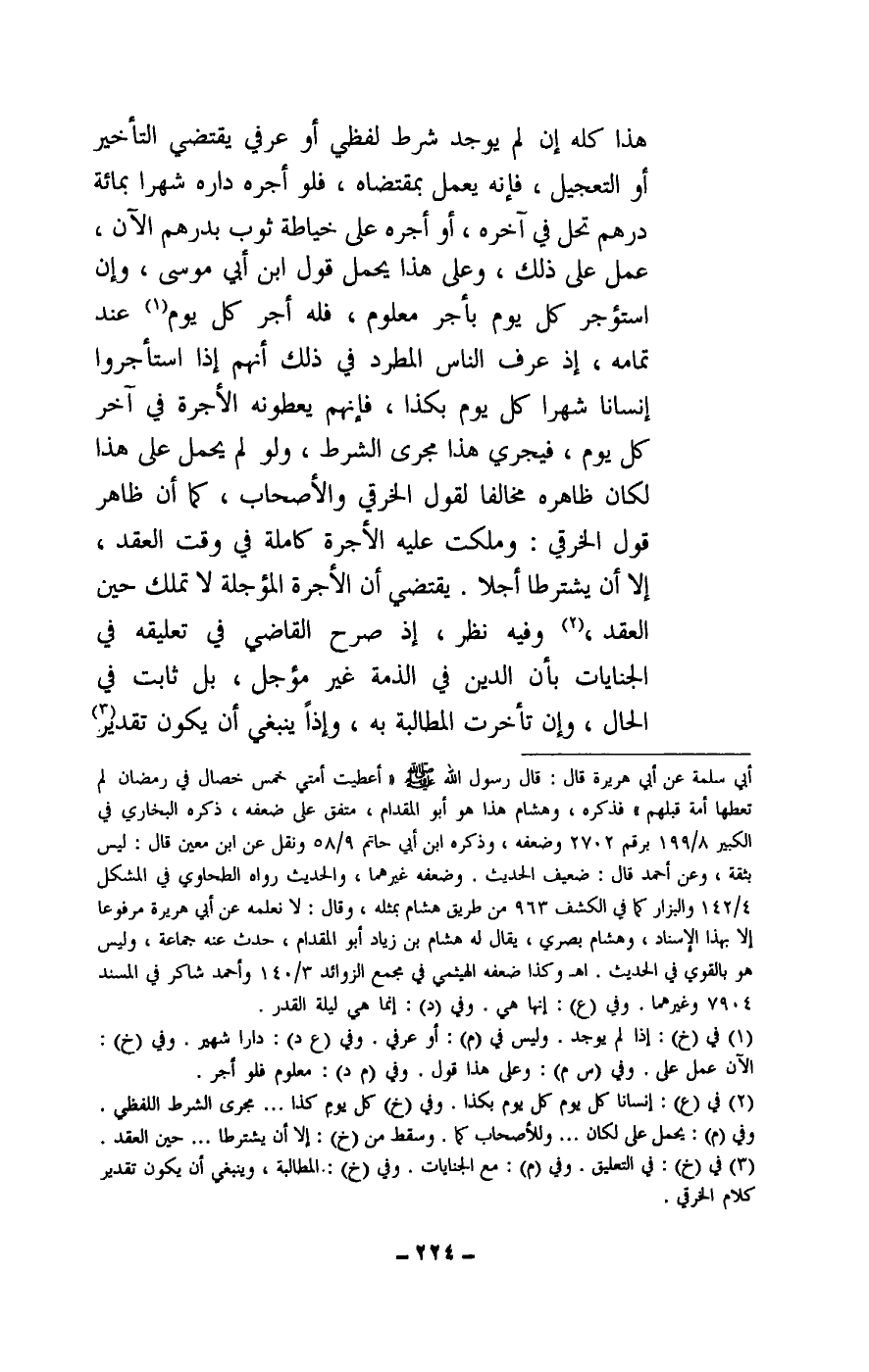 هذا كله إن لم يوجد شرط لفظي أو عرفي يقتضي التأخير أو التعجيل، فإنه يعمل بمقتضاه، فلو أجره داره شهرا بمائة درهم تحل في آخره، أو أجره على خياطة ثوب بدرهم الآن، عمل على ذلك، وعلى هذا يحمل قول ابن أبي موسى، وإن استؤجر كل يوم بأجر معلوم، فله أجر كل يوم عند تمامه، إذ عرف الناس المطرد في ذلك، أنهم إذا استأجروا إنسانا شهرا كل يوم بكذا، فإنهم يعطونه الأجرة في آخر كل يوم، فيجري هذا مجرى الشرط، ولو لم يحمل على هذا لكان ظاهره مخالفا لقول الخرقي والأصحاب، كما أن ظاهر قول الخرقي: وملكت عليه الأجرة كاملة في وقت العقد، إلا أن يشترطا أجلا. يقتضي أن الأجرة المؤجلة لا تملك حين العقد، وفيه نظر، إذ صرح القاضي في تعليقه في الجنايات بأن الدين في الذمة غير مؤجل، بل ثابت في الحال، وإن تأخرت المطالبة به، وإذا ينبغي أن يكون تقدير