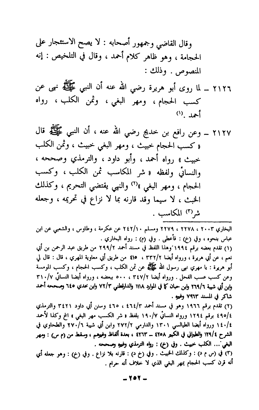 2126 - لما روى أبو هريرة - رَضِيَ اللَّهُ عَنْهُ - «أن النبي - صَلَّى اللَّهُ عَلَيْهِ وَسَلَّمَ - نهى عن كسب الحجام، ومهر البغي، وثمن الكلب» ، رواه أحمد.