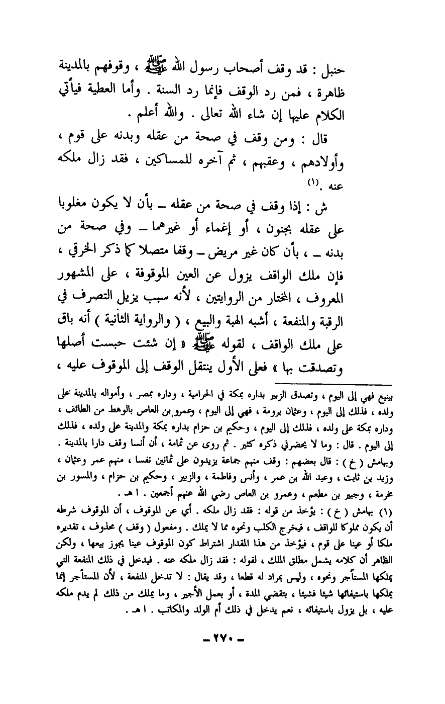 حنبل: قد وقف أصحاب رسول الله - صَلَّى اللَّهُ عَلَيْهِ وَسَلَّمَ - وقوفهم بالمدينة ظاهرة، فمن رد الوقف فإنما رد السنة. وأما العطية فيأتي الكلام عليها إن شاء الله تعالى. والله أعلم.