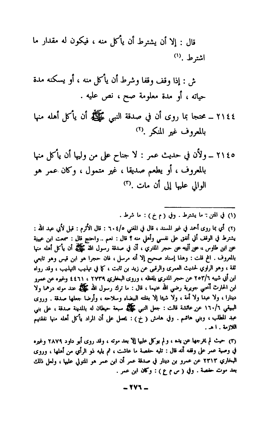 2145 - ولأن في حديث عمر: «لا جناح على من وليها أن يأكل منها بالمعروف، أو يطعم صديقا، غير متمول» ، وكان عمر هو الوالي عليها إلى أن مات.