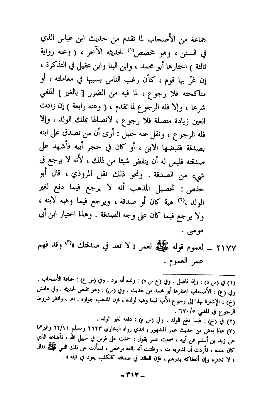 2177 - لعموم قوله – - صَلَّى اللَّهُ عَلَيْهِ وَسَلَّمَ - لعمر: «لا تعد في صدقتك» وقد فهم عمر العموم.