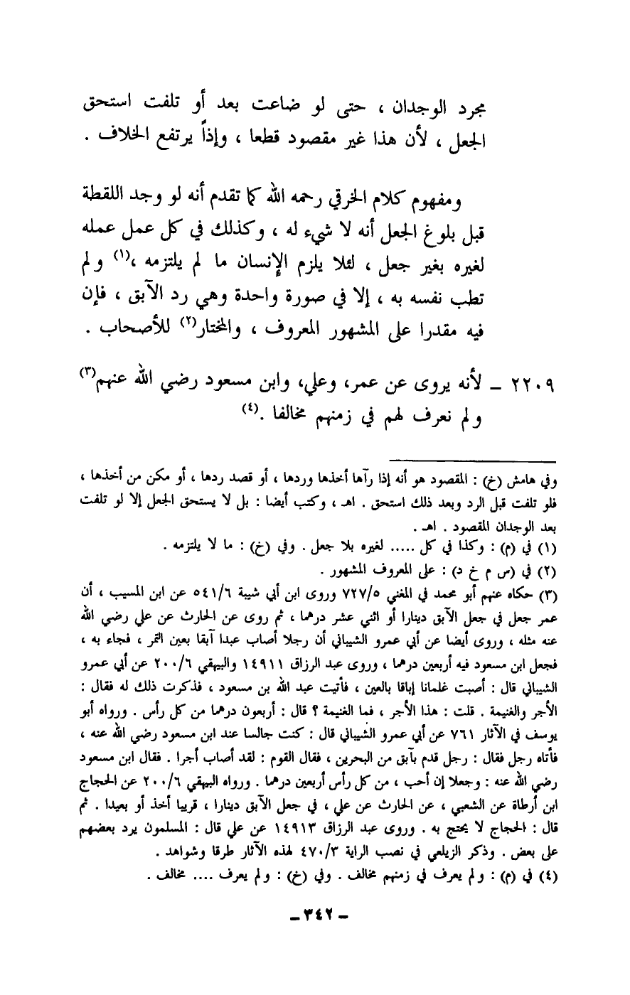 مجرد الوجدان، حتى لو ضاعت بعد أو تلفت استحق الجعل، لأن هذا غير مقصود قطعا، وإذا يرتفع الخلاف. ومفهوم كلام الخرقي - رَحِمَهُ اللَّهُ - كما تقدم أنه لو وجد اللقطة قبل بلوغ الجعل أنه لا شيء له، وكذلك في كل عمل عمله لغيره بغير جعل، لئلا يلزم الإنسان ما لم يتلزمه، ولم تطب نفسه به، إلا في صورة واحدة وهي رد الآبق، فإن فيه مقدرا على المشهور المعروف، والمختار للأصحاب.