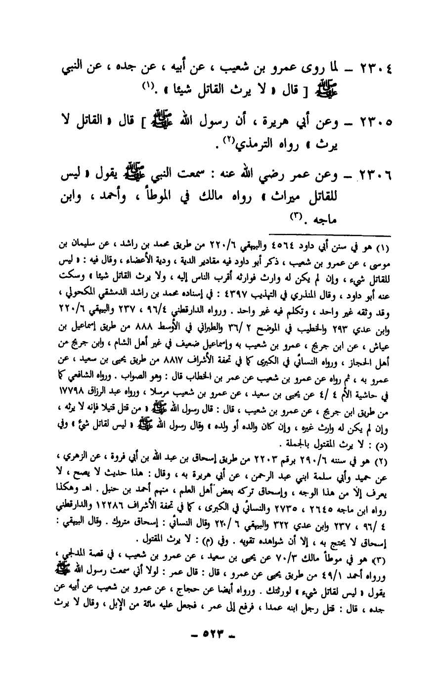 2304 - لما روى عمرو بن شعيب، عن أبيه، عن جده، عن النبي - صَلَّى اللَّهُ عَلَيْهِ وَسَلَّمَ -[قال: «لا يرث القاتل شيئا» .