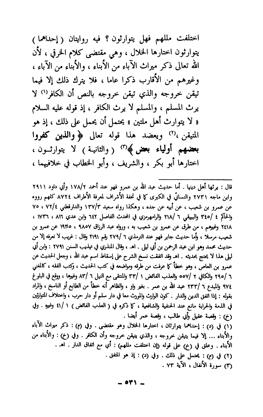 اختلفت مللهم فهل يتوارثون؟ فيه روايتان: