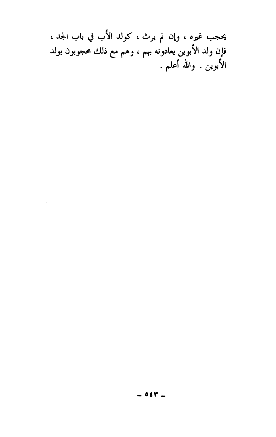 يحجب غيره، وإن لم يرث، كولد الأب في باب الجد، فإن ولد الأبوين يعادونه بهم، وهم مع ذلك محجوبون بولد الأبوين. والله أعلم.