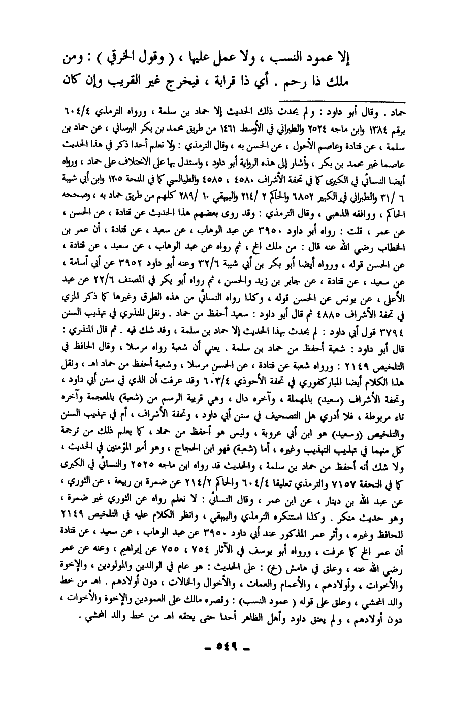إلا عمود النسب، ولا عمل عليها، (وقول الخرقي) : ومن ملك ذا رحم. أي: ذا قرابة، فيخرج غير القريب وإن كان