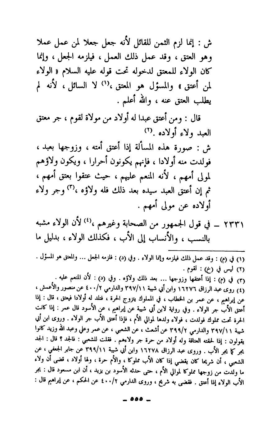 2331 - في قول الجمهور من الصحابة وغيرهم، لأن الولاء مشبه بالنسب، والأنساب إلى الأب، فكذلك الولاء، بدليل ما