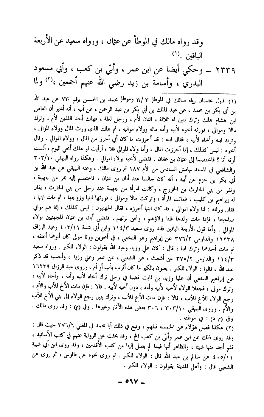 2339 - وحكي أيضا عن ابن عمر، وأبي بن كعب، وأبي مسعود البدري، وأسامة بن زيد - رَضِيَ اللَّهُ عَنْهُمْ أَجْمَعِينَ -، ولما