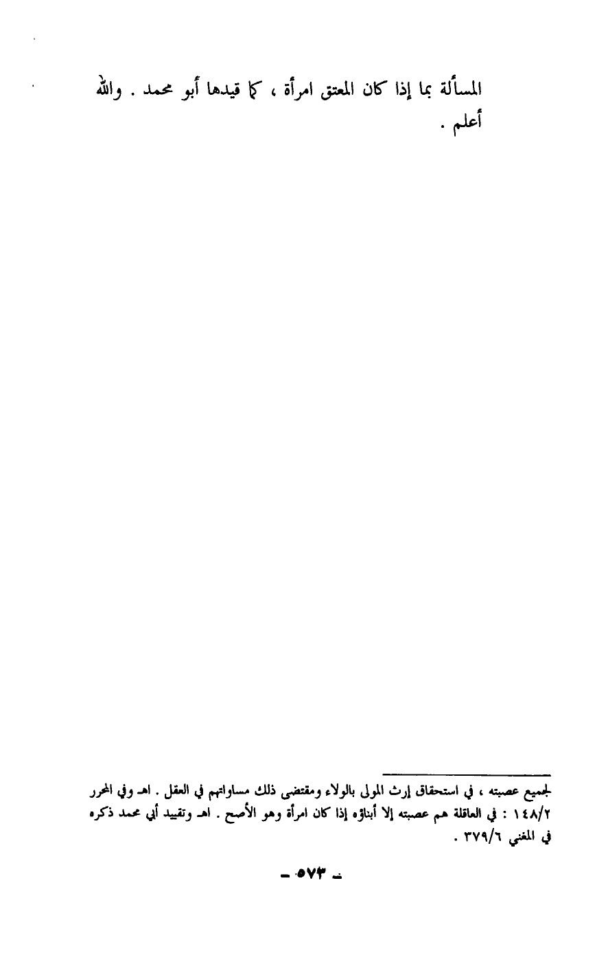 المسألة بما إذا كان المعتق امرأة، كما قيدها أبو محمد. والله أعلم.