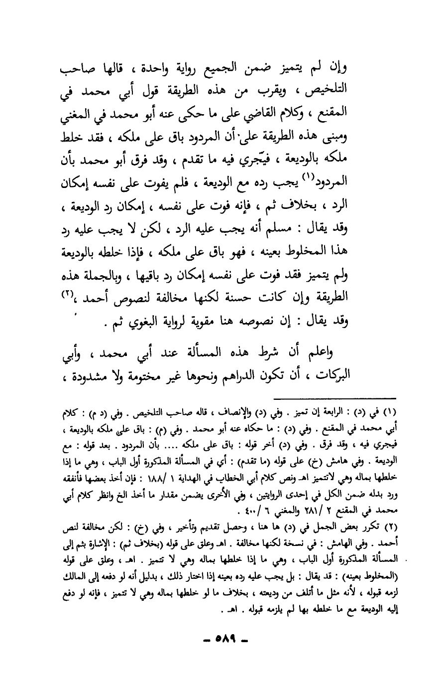 وإن لم يتميز ضمن الجميع رواية واحدة، قالها صاحب التلخيص، ويقرب من هذه الطريقة قول أبي محمد في المقنع، وكلام القاضي على ما حكى عنه أبو محمد في المغني، ومبنى هذه الطريقة على أن المردود باق على ملكه، فقد خلط ملكه بالوديعة، فيجري فيه ما تقدم، وقد فرق أبو محمد بأن المردود يجب رده مع الوديعة، فلم يفوت على نفسه إمكان الرد، بخلاف ثم، فإنه فوت على نفسه، إمكان رد الوديعة، وقد يقال: مسلم أنه يجب عليه الرد، لكن لا يجب عليه رد هذا المخلوط بعينه، فهو باق على ملكه، فإذا خلطه بالوديعة، ولم يتميز فقد فوت على نفسه إمكان رد باقيها، وبالجملة هذه الطريقة وإن كانت حسنة لكنها مخالفة لنصوص أحمد، وقد يقال: إن نصوصه هنا مقوية لرواية البغوي ثم.
