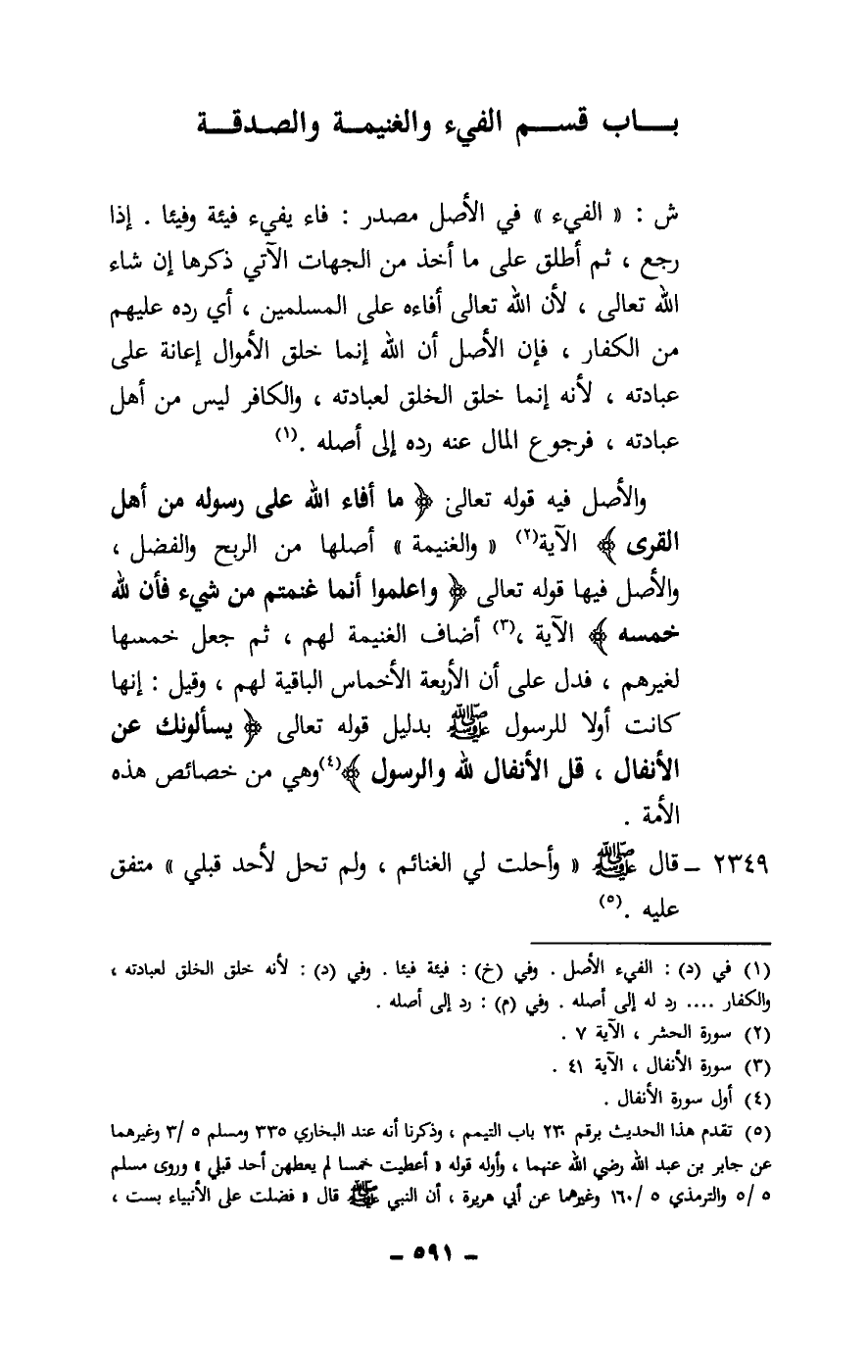 2349 - قال: «وأحلت لي الغنائم، ولم تحل لأحد قبلي» متفق عليه.